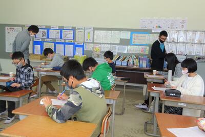 今日は、湯津上中学校の皆川先生が来校し、6年生の授業を参観しました。