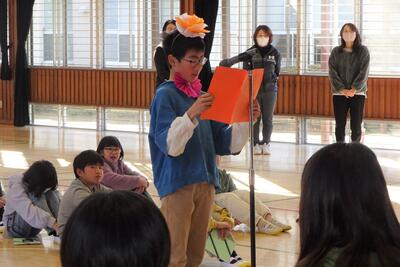 今日は、6年生を送る会でした。在校生が、お世話になった6年生に感謝の気持ちを伝えました。