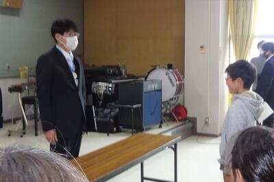 校長先生のお話:バトンを引き継ぐことの大切さと、侍塚古墳こも外しの話をしてくださいました。
