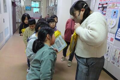 今朝は、今年度最後の小中一貫あいさつ運動でした。今回は、児童昇降口で行いました。